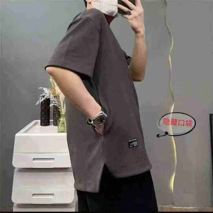 男士夏季薄款华夫格大版宽松休闲短袖圆领T恤,后领包...