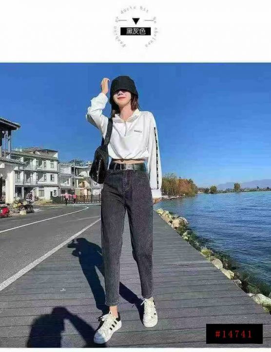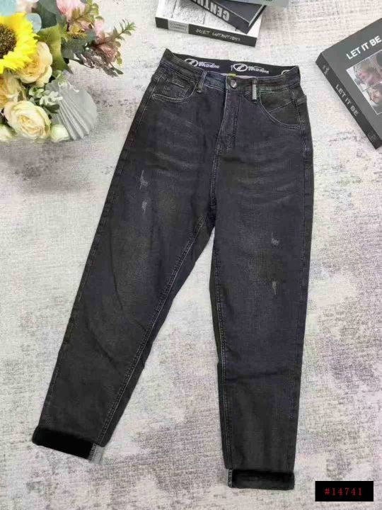 3️⃣天猫下架品牌女士加绒高腰哈伦牛仔裤萝卜老爹裤117,码数26-29,独立包装带吊牌,中山货质量非常好,有酸味有些拉链氧化有些没有,当瑕疵处理