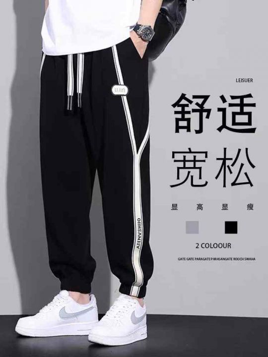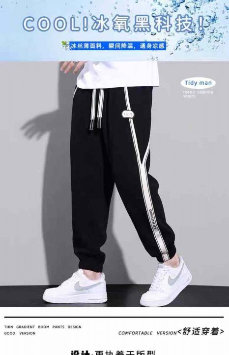 ☕️男士冰丝休闲裤子美式潮牌束脚运动卫裤 100条全清...