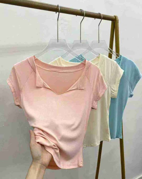 人棉设计感V领短袖324件6.5面料柔软舒适,高弹力,码...