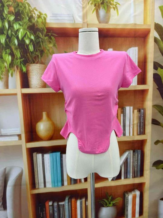 清3.8分货➕0.5玫红色辣妹短袖t恤女夏设计感小众套头体恤纯欲紧身显瘦上衣...