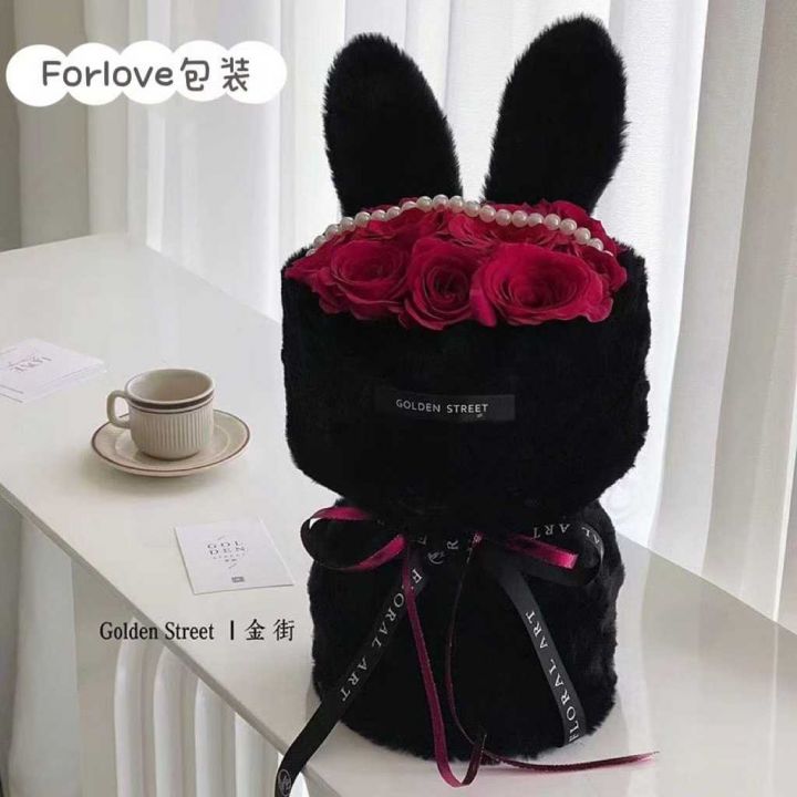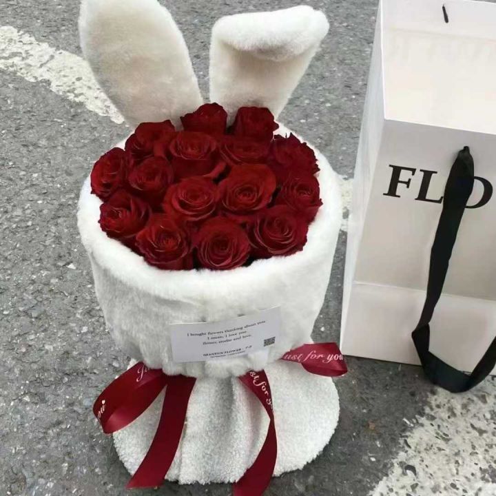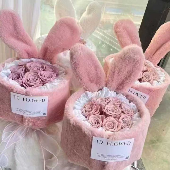 5000个爆款兔耳朵抱抱桶小香风,毛绒鲜花包材,多色,...