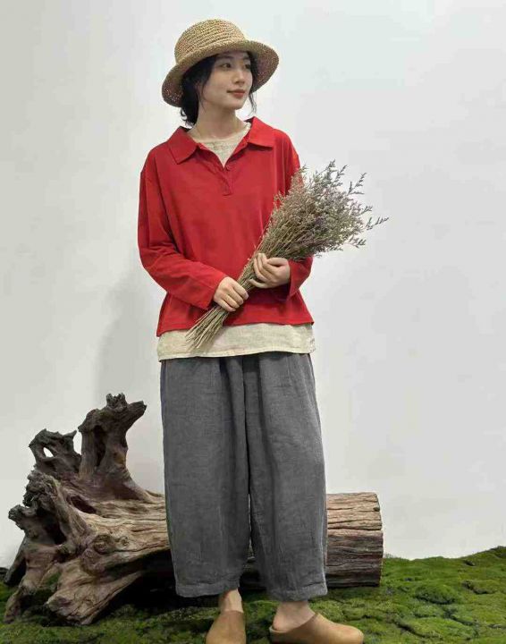 舒适弹力长袖薄款衬衣女外穿时尚简约宽松显瘦POLO领套头上衣,数量1960件,码数s-4xl,独立包装,全清4.8元。 货号:24862