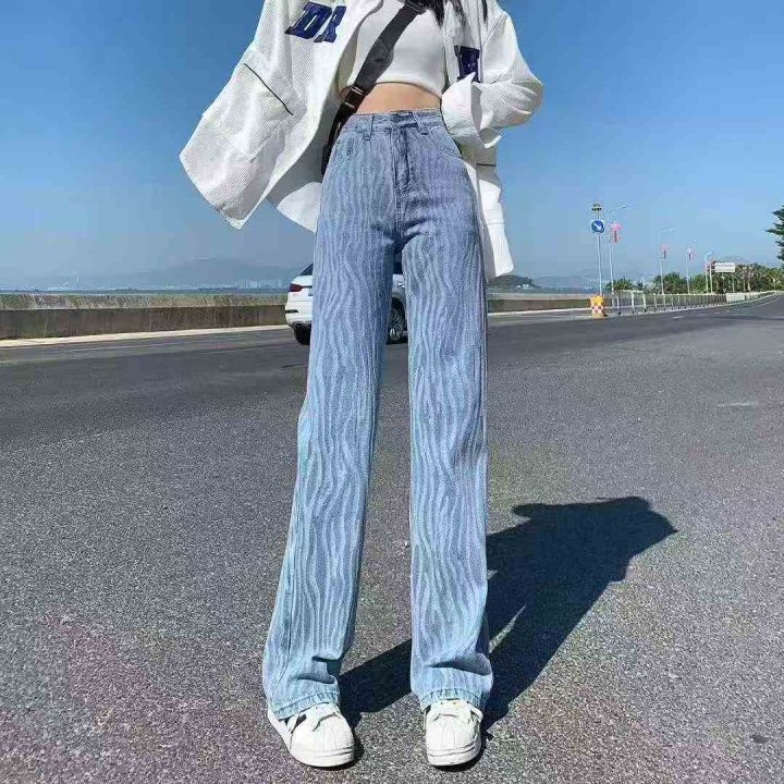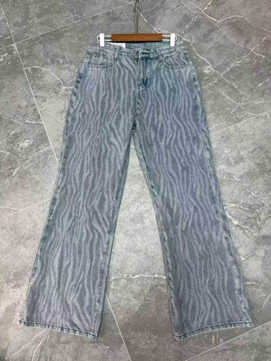 茵曼秋季高腰波浪纹阔腿牛仔裤日常通勤风宽松显瘦显高垂坠长裤,独立包装,580件左右,全清11.8块分货加一