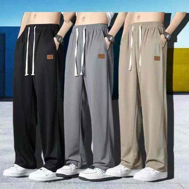外穿夏季冰丝薄款速干透气休闲裤男生运动垂感直筒阔腿长裤,全部独立拉链原包装,基本都是图一款,尺码M到4XL,黑色占比超过50%,货品干净,版型漂亮