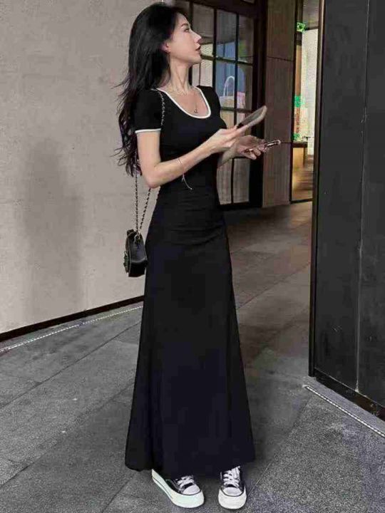 2300条撞色U领小心机露背气质修身包臀辣妹大长款连衣裙,尺码XS-2XL,面料...