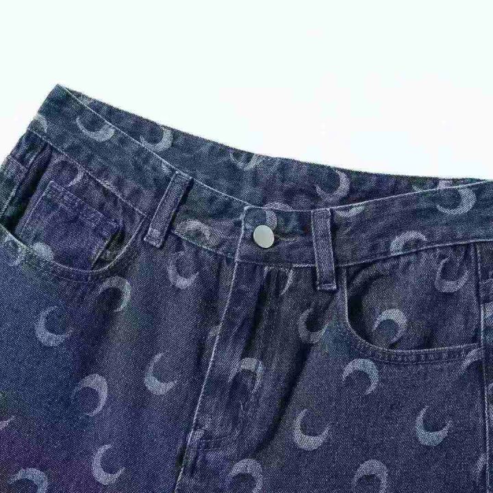 茵曼秋季新款爆款印花设计感牛仔裤洋气直筒阔腿宽松休...