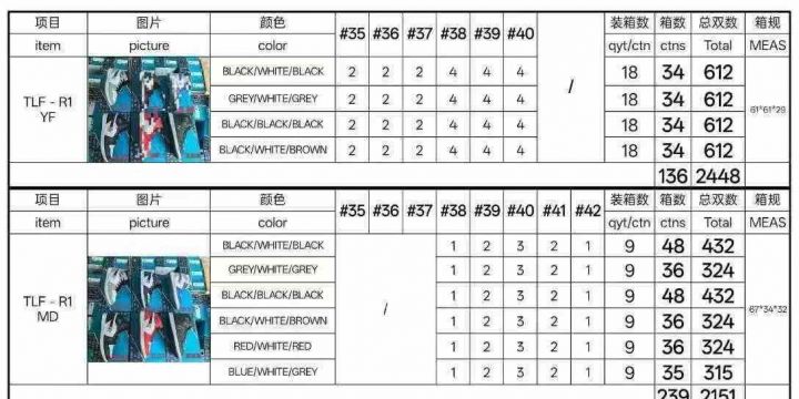 原单 4000双 35-40 配码***** 38-42 配码1232...