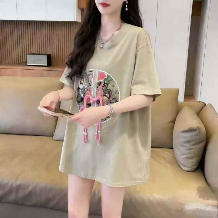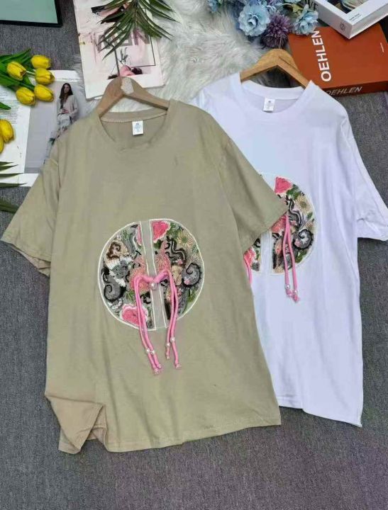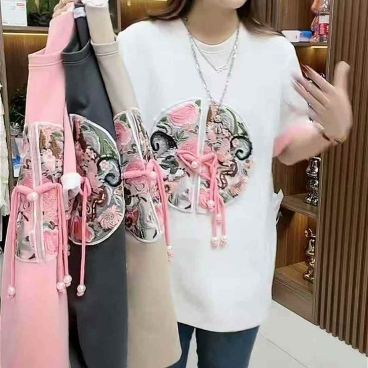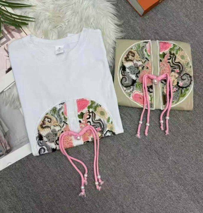 全清价8.8新中式国风刺绣宽松短袖大版气质棉T恤,独立...