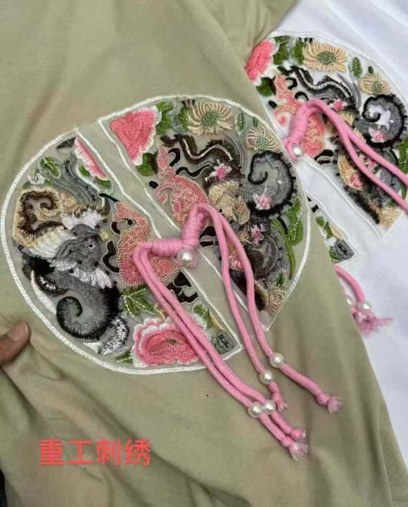 新中式国风刺绣宽松短袖大版气质棉T恤,独立包装,整款两色,码数2-5码,数量173件,货号116#19
