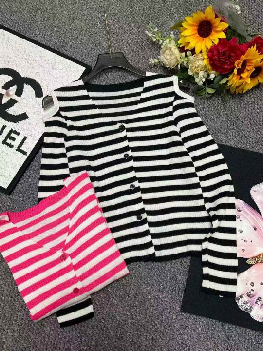 春夏季新款纯欲风V领露肩小心机设计感条纹显瘦针织开衫,独立包装,均码面料柔软舒适弹力大,500件,全清5.9元超低价秒杀!分货加一!
