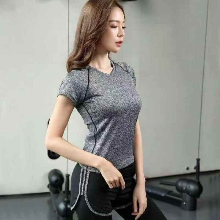 ☕️瑜伽服套装女夏季短袖运动T恤专业跑步新款速干衣健身上衣73套全清8.9元,独立包装,高弹力均码[庆祝][庆祝][庆祝]