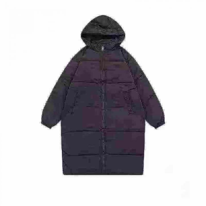 冬季女中长款韩版宽松连帽纯色新款情侣过膝加厚休闲面...