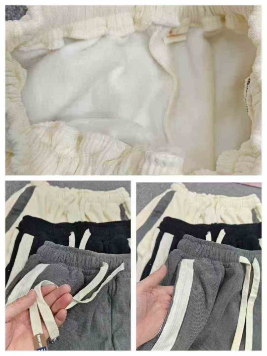 侧边条纹灯芯绒男冬季加绒加厚潮牌宽松束脚裤子,整款三色,独立包装M-3XL,800件左右,10.8清,分+1