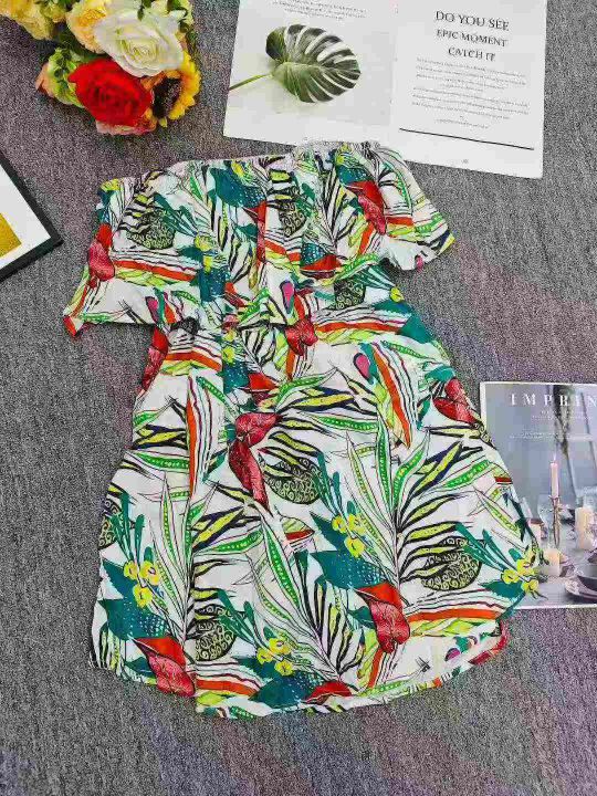 6.9清电商仓回收164件碎花度假风一字肩连衣裙,码数S-...