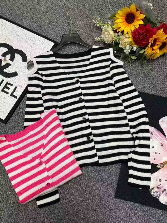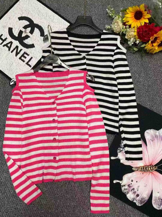 春夏季新款纯欲风V领露肩小心机设计感条纹显瘦针织开衫,独立包装,均码面料柔软舒适弹力大,500件,全清5.9元超低价秒杀!分货加一!。 货号:24862