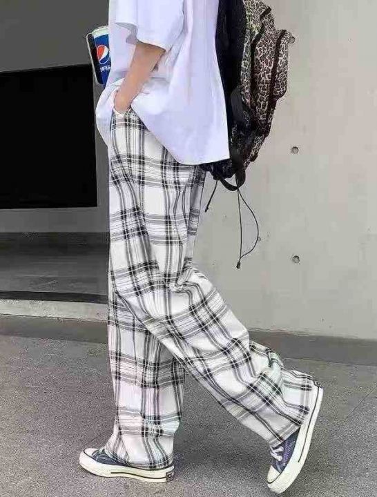 ☕️韩版港风chic百搭休闲高腰宽松格子休闲裤阔腿裤15...
