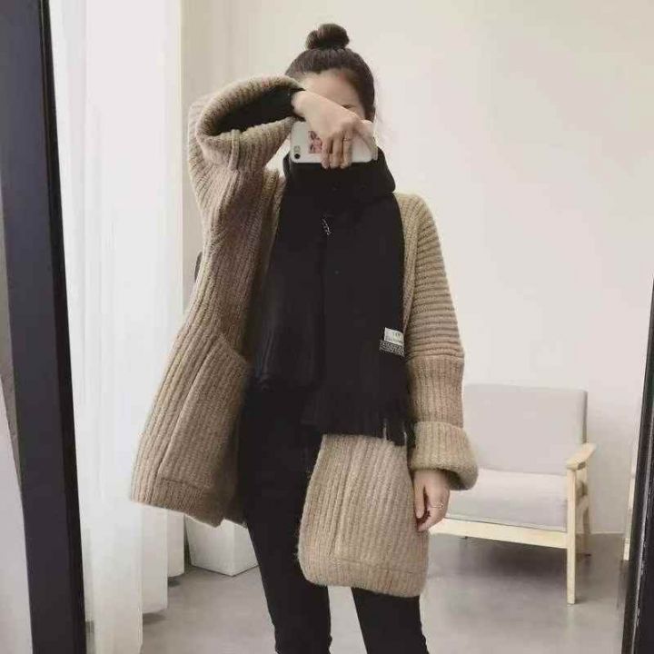 品牌原单韩系宽松净版简约粗针大口袋毛衣开衫,独立包...