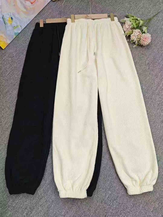 新款加绒灯芯绒休闲裤子女高腰宽松显瘦束脚外穿运动裤子,整款两色,独立包装,1-3码,650件左右,7.8清,分+1
