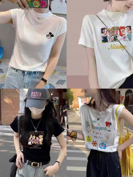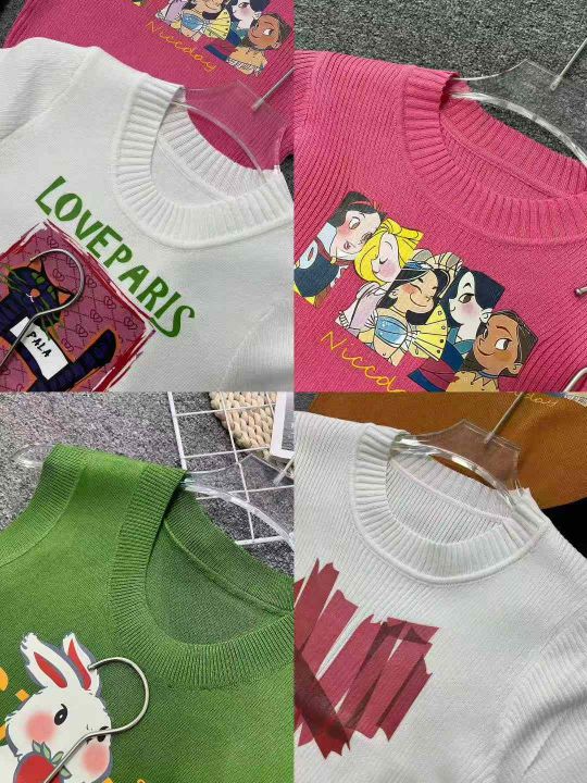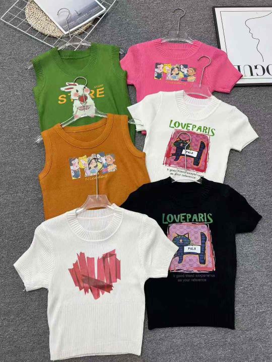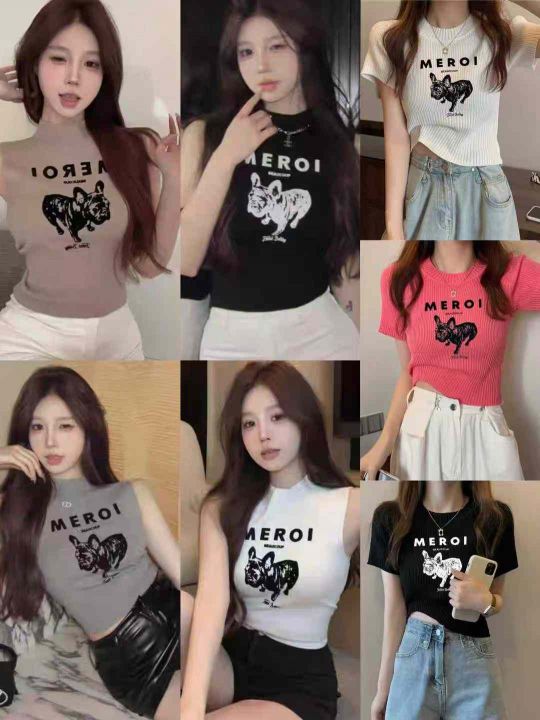 ☕️热销辣妹女装针织系列短袖T恤 526件全清9.8元,分货10.8元,小整图片系列款,独立包装,冰丝针织短袖t恤女早春款修身甜辣短款别致小衫印花正肩上衣