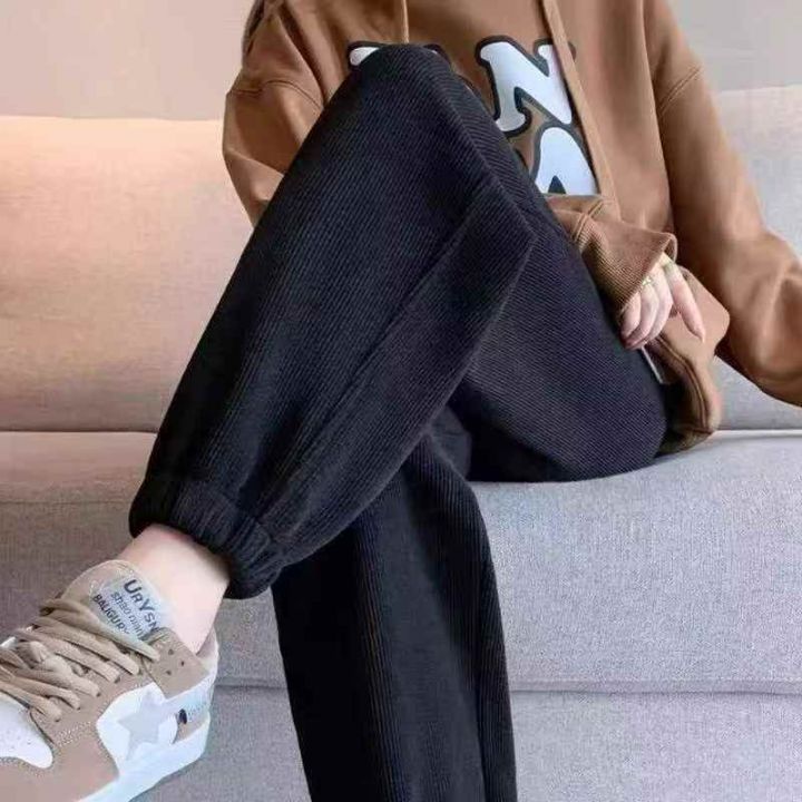 新款加绒灯芯绒休闲裤子女高腰宽松显瘦束脚外穿运动裤...