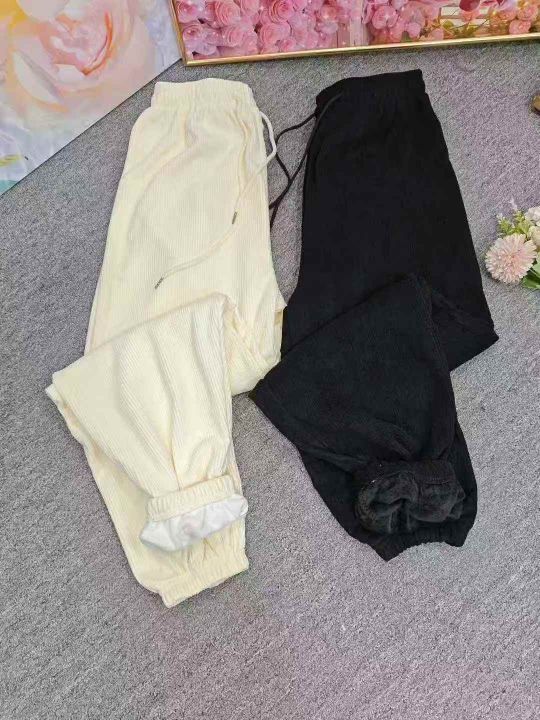 新款加绒灯芯绒休闲裤子女高腰宽松显瘦束脚外穿运动裤子,整款两色,独立包装,1-3码,650件左右,7.8清,分+1