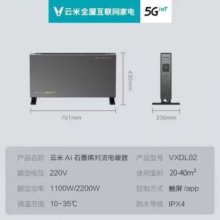 云米AI石墨烯取暖器,2200W大功率