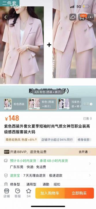 新款时尚气质西装套装284套,码数S-4XL,宽松版型,单...