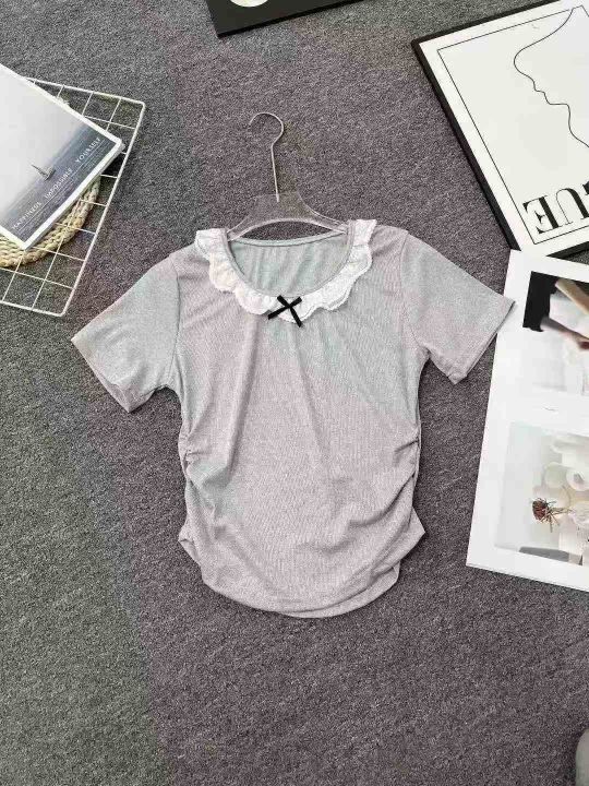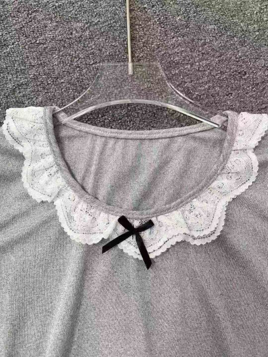☕️纯欲风辣妹T恤蕾丝短袖T恤女夏季新款蝴蝶结甜辣妹...