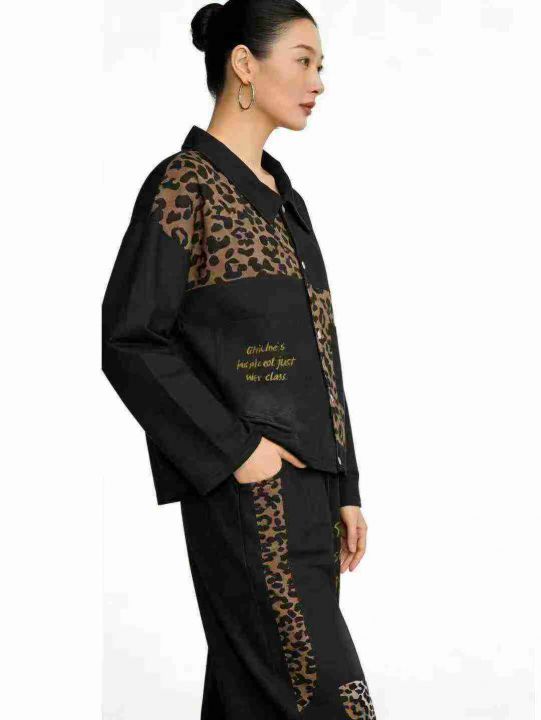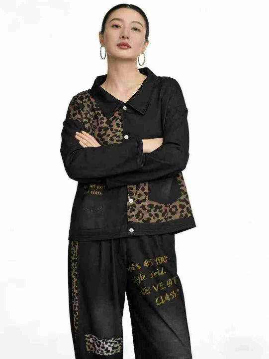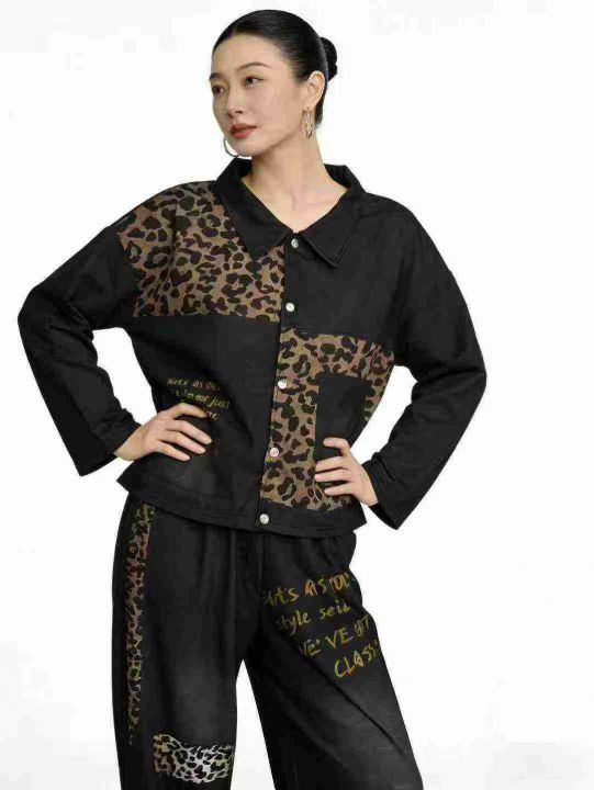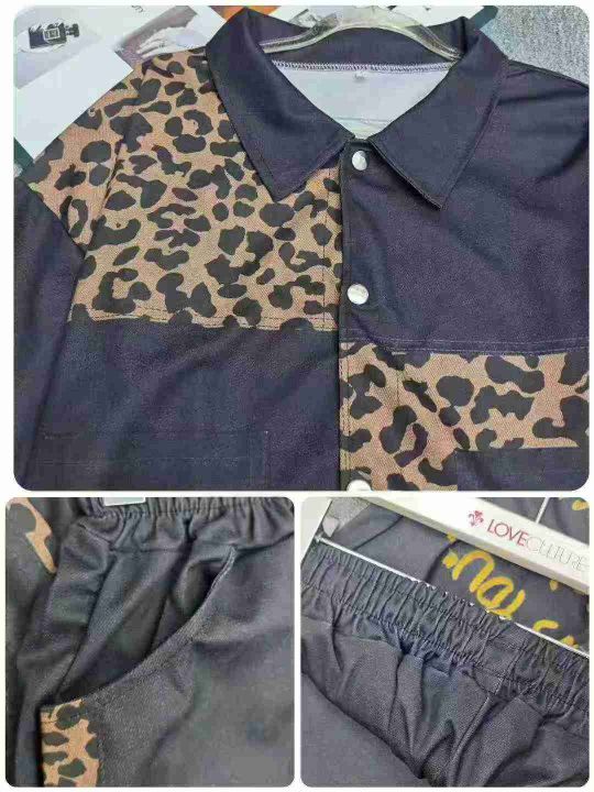 电商仓回收497套高级小众仿牛仔休闲风豹纹拼色女士套装,码数M-XL-3XL。面料柔软舒适,独立包装,分货➕1。 货号:24862