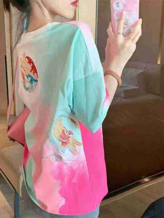 6.8清电商仓回收212件多巴胺扎染彩色渐变纯棉短袖T恤...