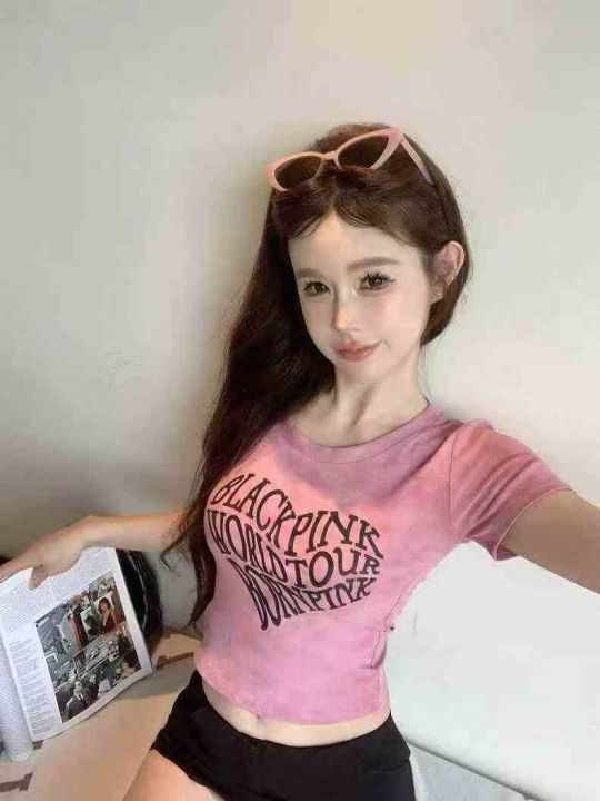 韩版小众扎染爱心字母印花短袖T恤显瘦短款辣妹上衣女,独立包装,1-3码,数量336件,分货加1,货号116#21