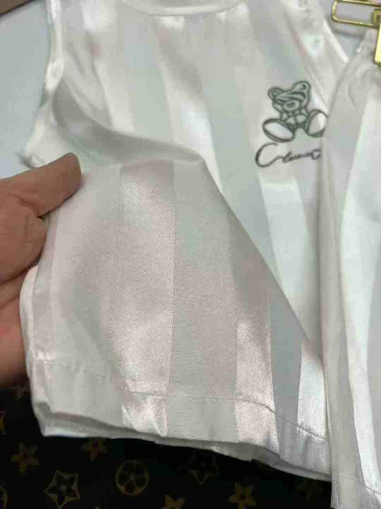 童装家居服套装,仿真丝面料,面料柔软透气凉爽,数量1765套,黑白两色,8-24码(3-13岁)独立包装吊牌,分货➕1元,模特图供参考大概款式,实物是童装!