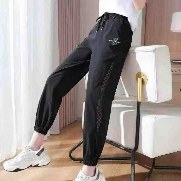 [月亮]:网纱镂空拼接/束脚抽绳休闲裤