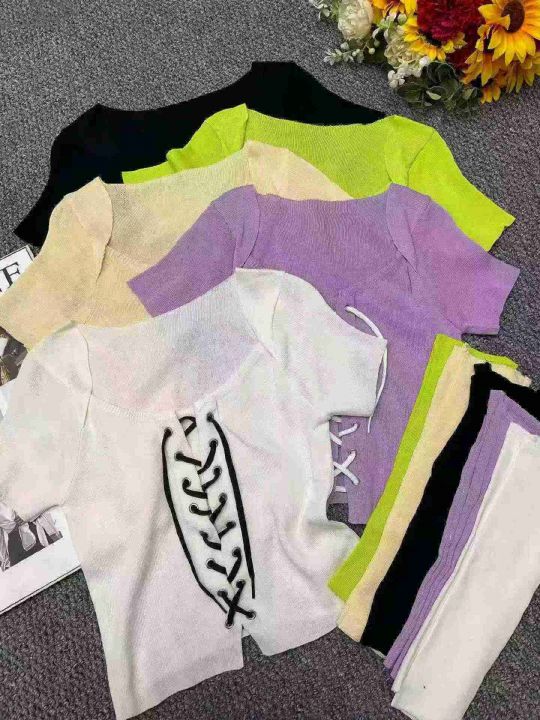 春夏季新款辣妹性感绑带设计感独特别致针织小衫,独立包装,均码面料柔软舒适弹力大,550件,全清5.9元超低价秒杀!分货加一!