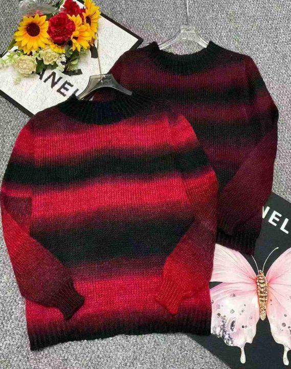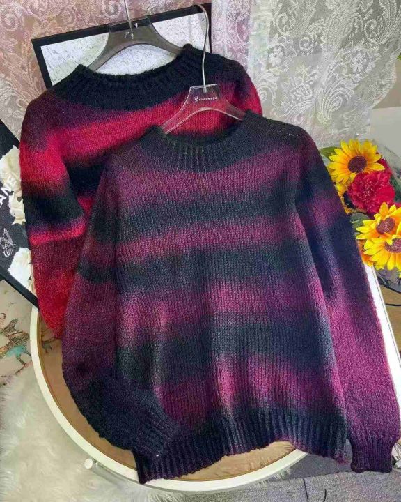 春秋新款宽松网红撞色圆领套头毛衣,独立包装,均码面料软糯舒适,1080件,全清5.9元超低价秒杀!分货加一!酒红色条纹为主!