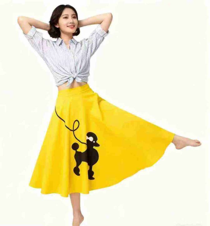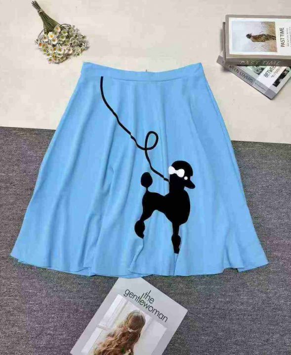跨境女装亚马逊爆款欧美外贸印花夏季贵宾犬A字裙子复古女半身裙 ,整款五色,品质好,有独立包装