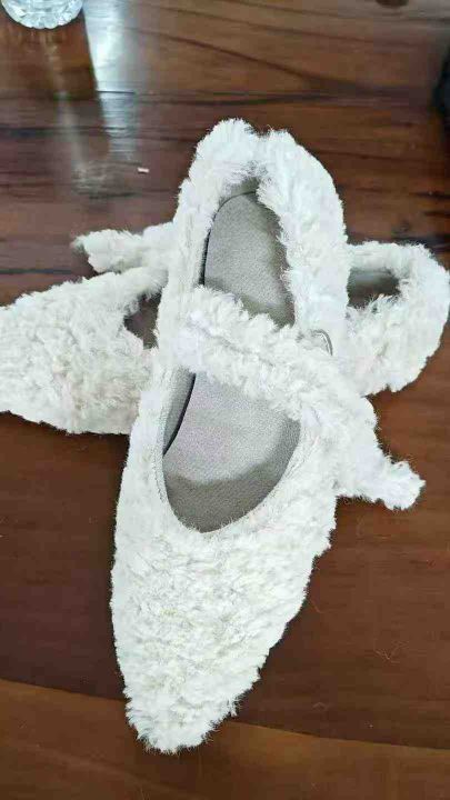 潮牌平底尖头玛丽珍毛毛鞋,秋冬外穿,温柔系,浅口一字扣平底棉鞋,上脚效...