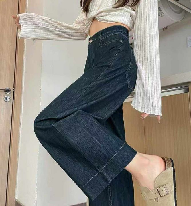 春秋新款梨形身材宽松高腰显瘦直筒阔腿9分牛仔裤,独...
