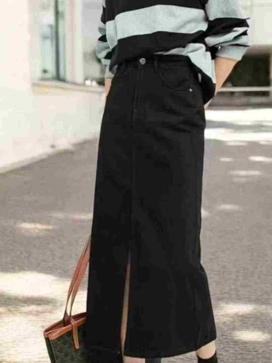 靓妹黑色牛仔半身裙女新款直筒开叉长裙子145件,独立包装带吊牌,尺码S~5XL全清独立包装9.8元