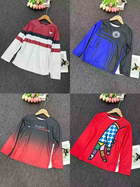 跨境外贸童壮印花长袖男女款T恤,大版宽松型后领包边 ...