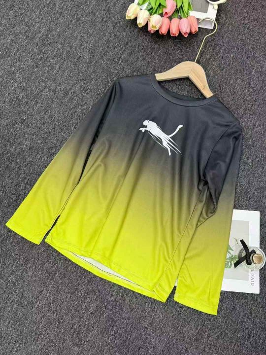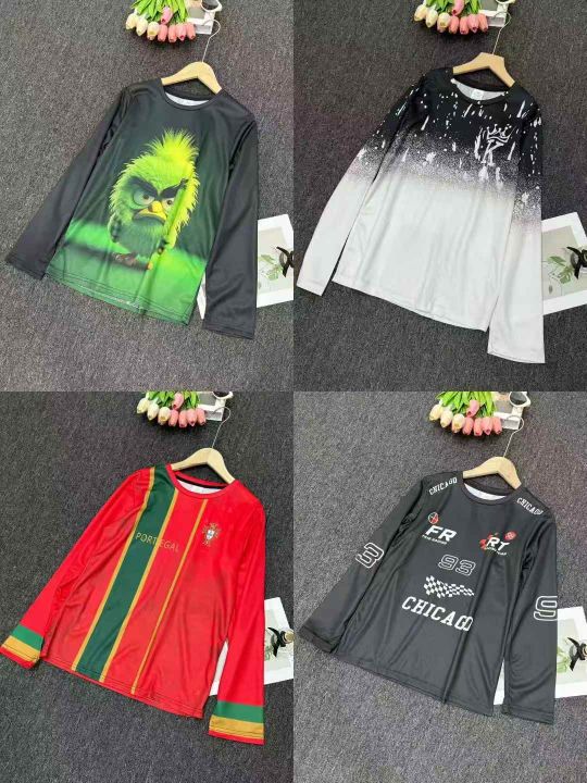 跨境外贸童壮印花长袖男女款T恤,大版宽松型后领包边 ...