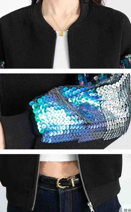彩色绣亮片长袖女外套约150件。单黑色如图F均码,三标...