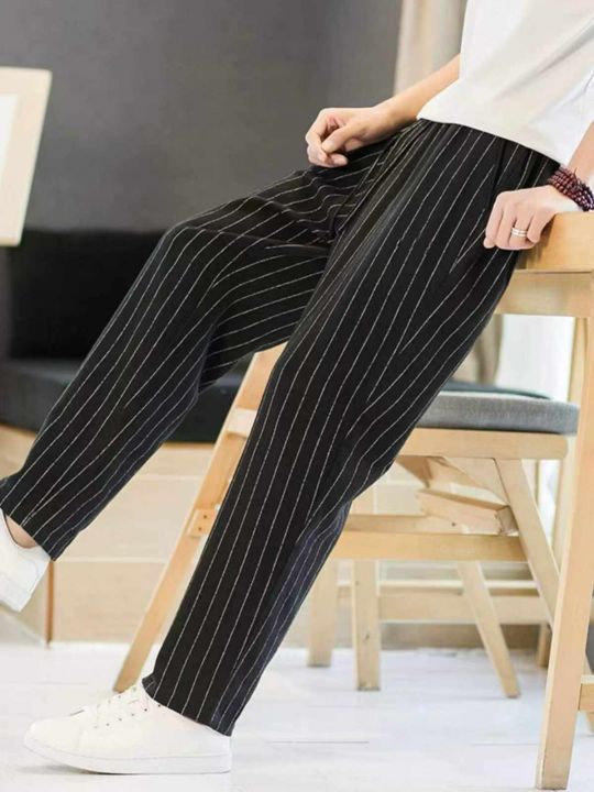 春秋新款男士条纹美式弹力棉直筒松紧腰休闲裤,独立包...