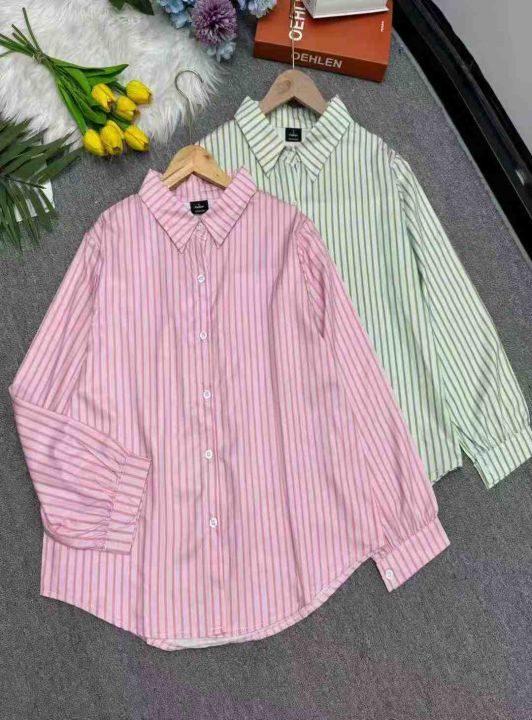 女竖条纹减龄韩系宽松气质显瘦衬衫,独立包装,码数1-5,数量140件,大货粉多,货号119#27