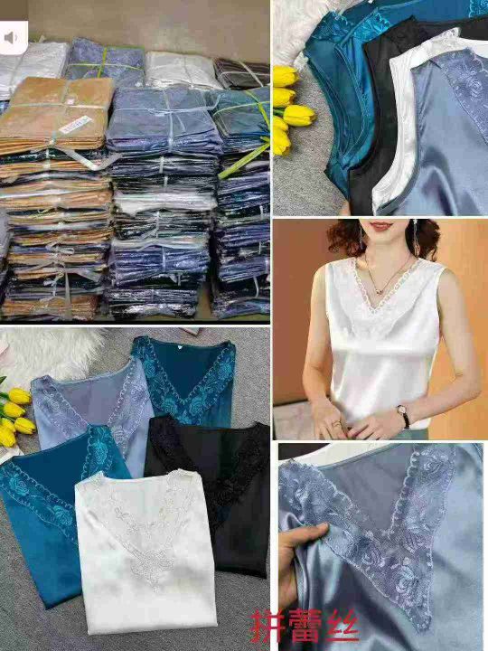 拼蕾丝时尚背心女夏季内搭真丝外穿无袖缎面打底衫,独立包装,整款多色,码数M-4XL,数量1903件,分货加1,货号116#18