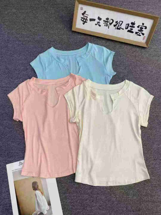 人棉设计感V领短袖324件6.5面料柔软舒适,高弹力,码...