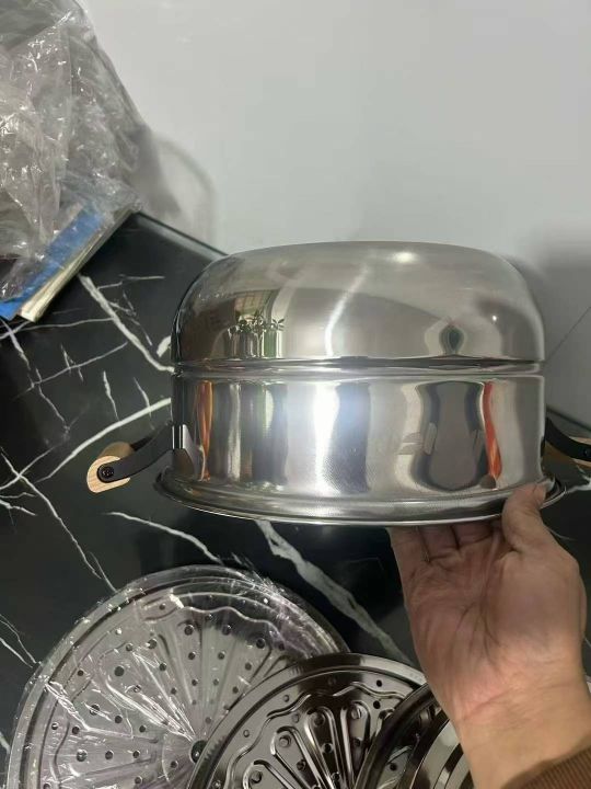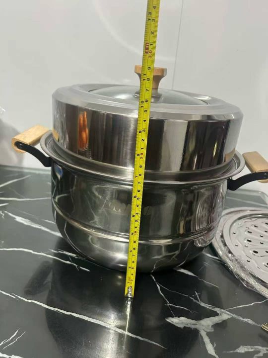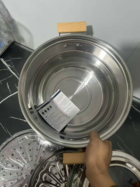 32特厚带磁、精抛光、组合盖木柄双层蒸锅,淘宝盒包装...