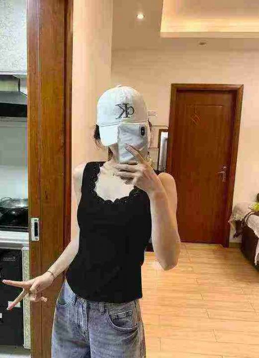 全清4.8元天猫在售款2130件夏款高品质螺纹纯棉纯欲风蕾丝蝴蝶结背心,高弹...