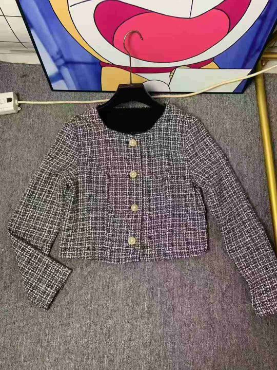 18.8清170套女装小香风外套短裤 两件套 复古圆领长袖格纹小香风粗花呢外套高腰短裤套装 码数XS- L 独立拉链包装。 货号:24862